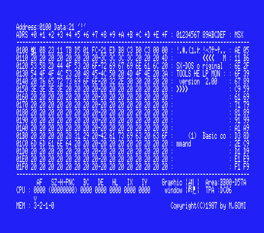 実用プログラム集にもPEDが掲載されています スーパーハンドブックは直接COMファイルで作成しますが 実用プログラム集は一旦マシン語ファイルにして COMファイル変換プログラムを使用しますが PED自体は同じになります 2025年 8月の打ち込み MSX−DOSスーパーハンドブック:COMファイルプリントアウトツール MSX DISK用 OK
