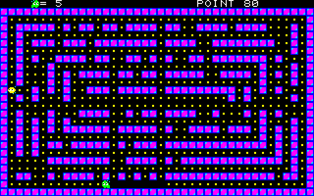 訂正記事は面データ抜け 3840 DATA 18,11,19,11,20,11,21,11,6,9,5,14,5,19,6,8,7,3,8,16,8,19,10 訂正記事は無いが全面クリアの処理で PC−8801版のプログラムを一部書き換える為 同じ不具合があります 面データへサブルーチンコールする部分があります RETURN命令が無いのでそこでプログラムは終了になり 終了メッセージが出ません 920 GOSUB 900:GOSUB 1920 ↓ 920 GOSUB 900:GOSUB 1600 に変更 またリストとタイトル画面が少し違っています クリア確認済み 2023年 9月の打ち込み Oh!X ’89/09:Defeat X X1 CZ−8FB01用 OK